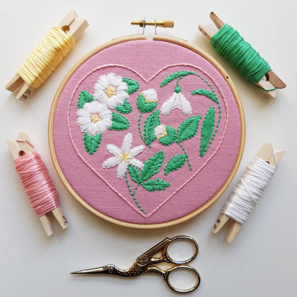 Although I had no doubt that I wanted to make lovely things, I was drawn to so many crafts and found it difficult to tame the numerous ideas swirling around in my mind. Therefore, I struggled to settle on any particular look or style. Just over a year ago, I started to doodle after a Winter’s walk and something felt right. I decided to follow my heart and my instincts and carry on drawing, using my experiences of nature and the seasons as my main inspiration. I thought my designs would translate well into embroidery. However, my initial efforts lead me to conclude that I was too inexperienced and just not good enough. After trying to paint and print my designs onto wood and paper, I came back to embroidery and spent the Summer practising and improving my craft. I released my first embroidery pattern, ‘An Autumn Doodle’, in November 2019.