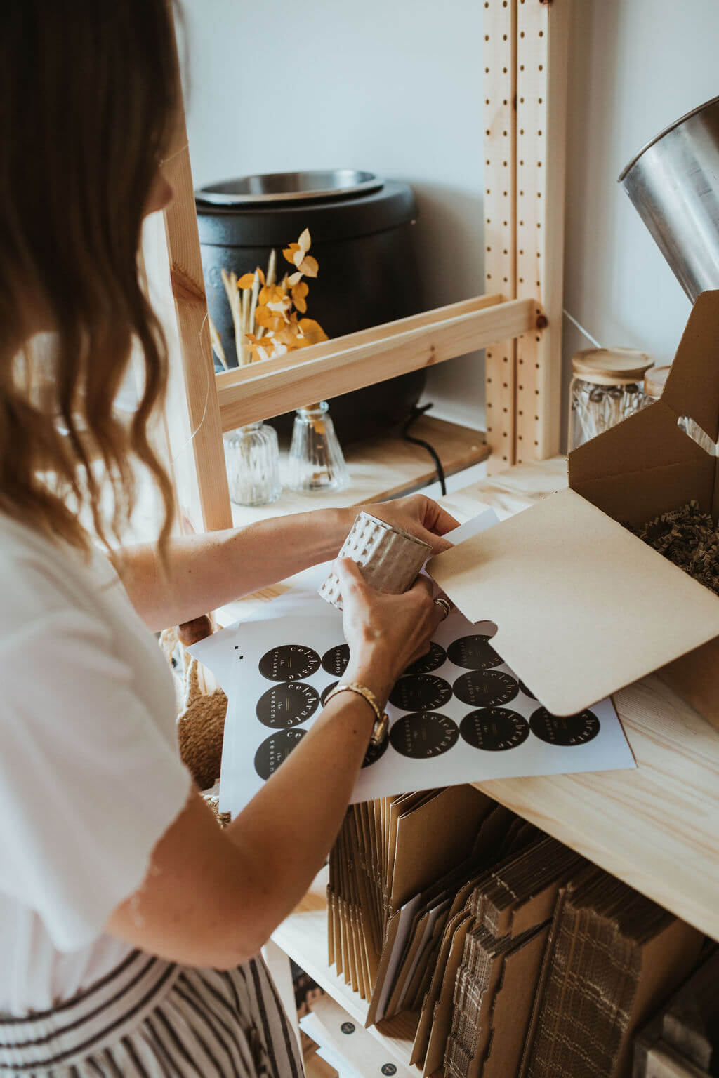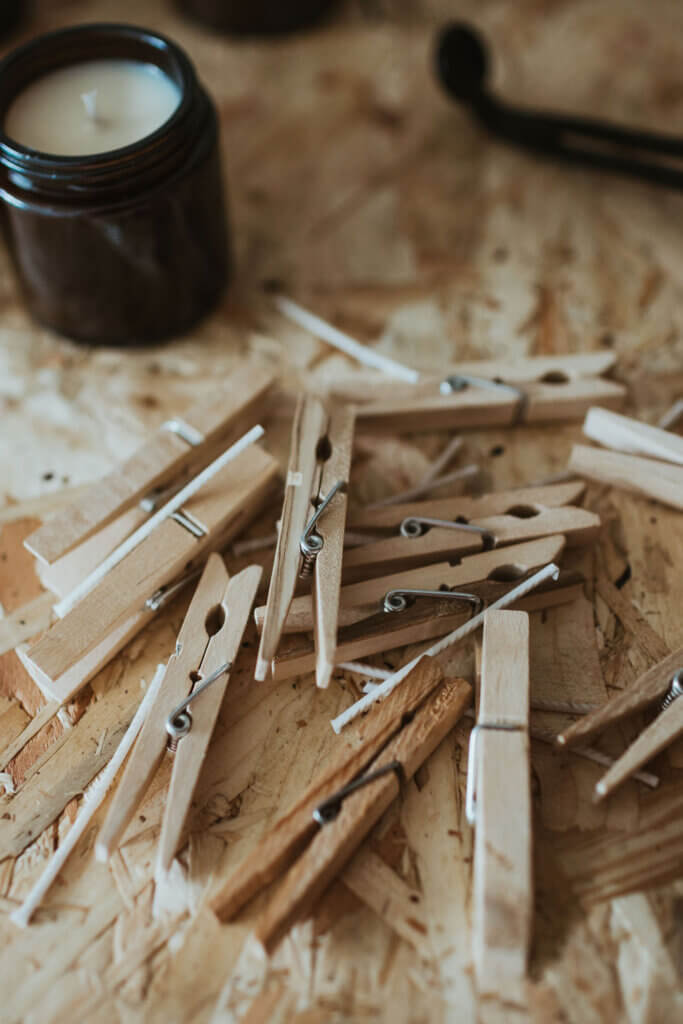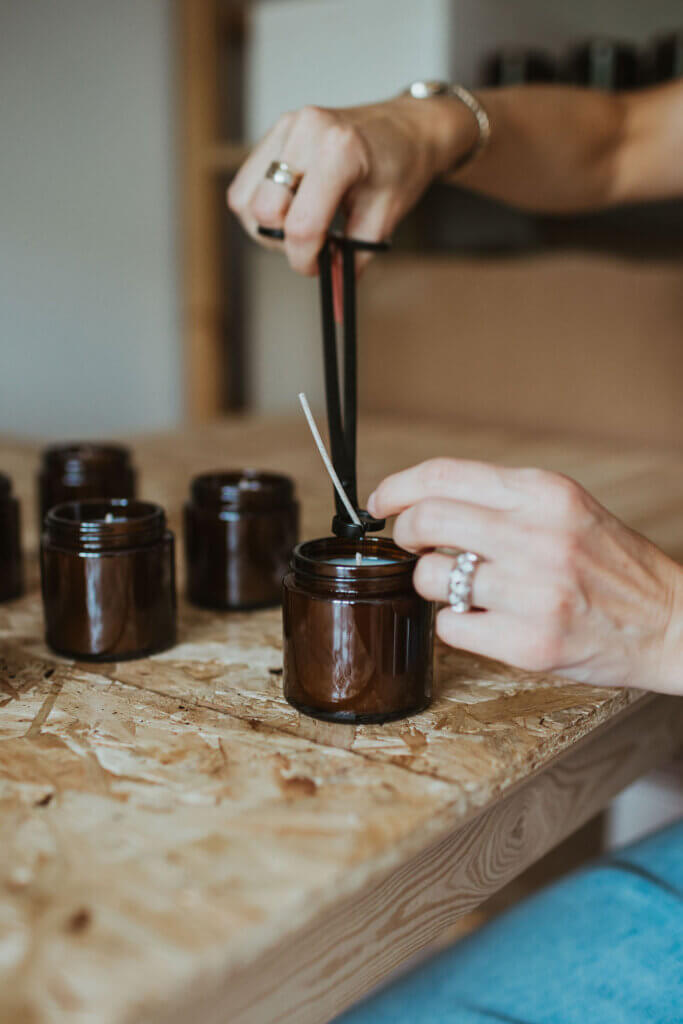 In keeping with the values behind The Smallest Light, I have filled the studio with materials which reflect simple, natural living. From the wooden shelving which houses all the stock, to the wooden pouring table which has seen its fair share of wax spillage, I love having the warmth and neutral colours of wood around me.