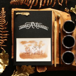 This nature-inspired art gift set contains everything you need, including Surrey Art School Sketchbook containing 140gsm All-Media Cartridge Pape, 2 sheets of A5 Watercolour Paper, High pigment 20ml Drawing Inks in Black (Indian Ink), Burnt Sienna and Burnt Umber, Wooden Dip Pen and Size 2 Copperplate Nib and a Size 6 White Synthetic Round Brush.