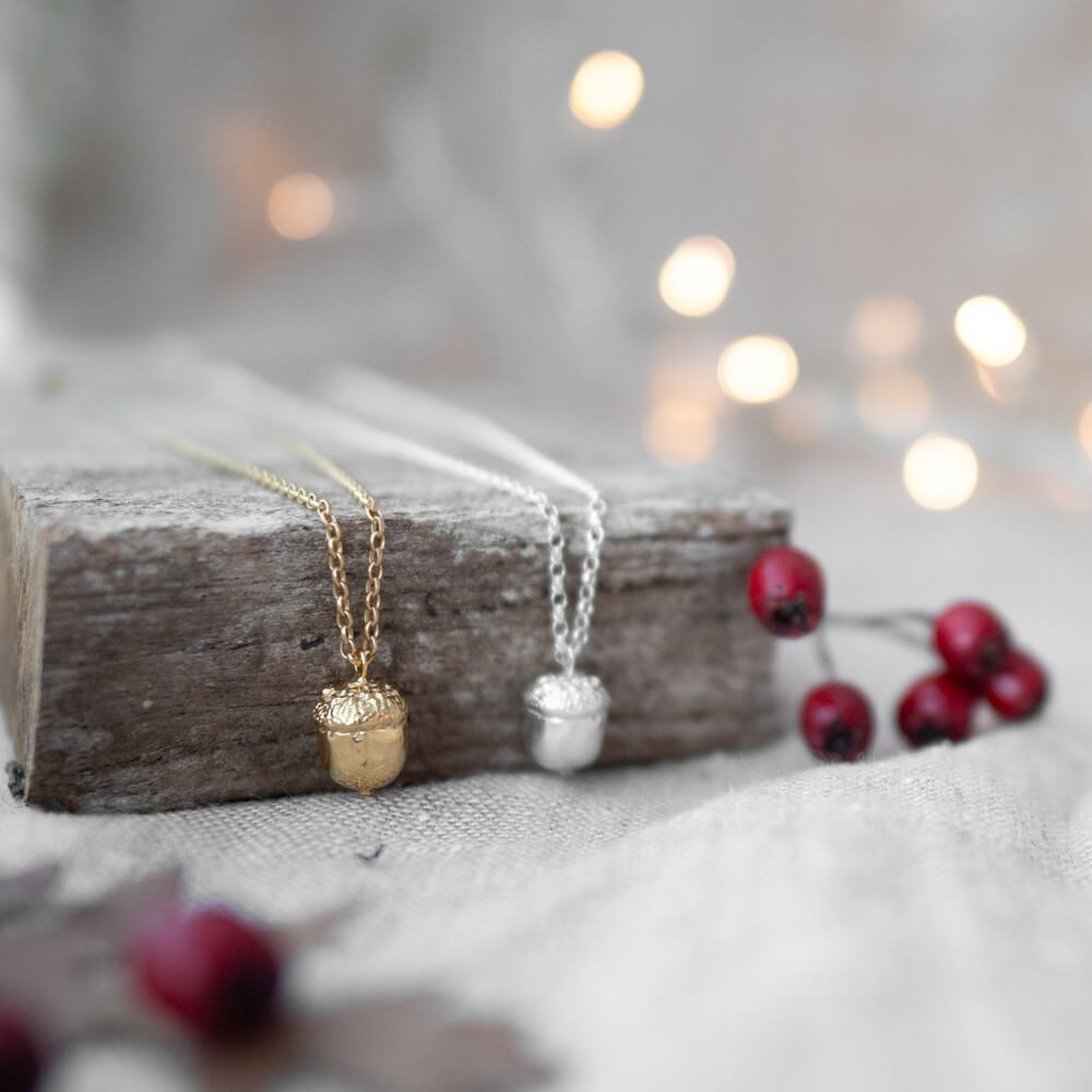 These stunning acorn necklaces are handcrafted in either sterling silver or gold plated for that extra Christmas sparkle.