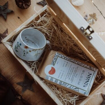 This gift set includes a beautiful wildflower stoneware coffee cup by Lindy Garner and a bag of Bloom coffee, roasted by an incredible one-woman coffee roaster in Stroud. These cute cups are the perfect size for a few stovetop coffees in the morning and the Bloom blend, is a beautifully smooth coffee with notes of dark chocolate, nut, raspberry and white sugar. A mini posy of wild dried flowers is added inside every hand stamped wooden gift box.