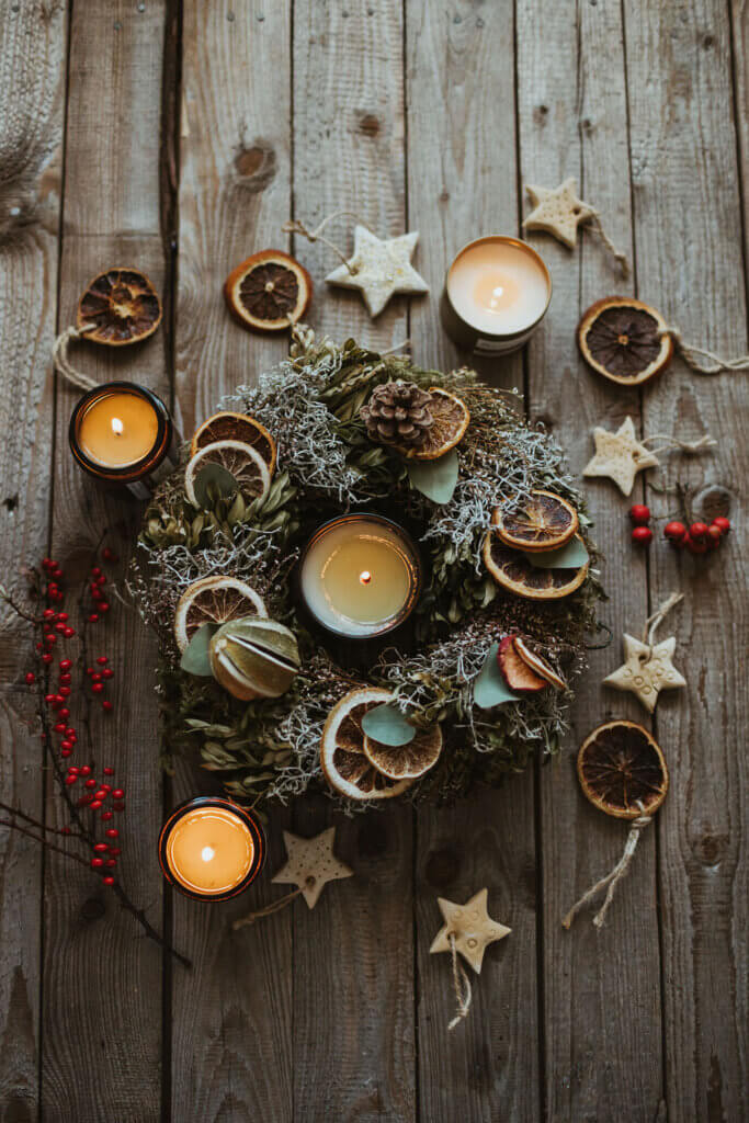 The word wreath is said to come from the old English word “writhen” meaning to twist, as in a circle or wheel. The wreath is also said to represent the wheel of the year, in recognition of the fact that the darkness and cold of winter will eventually fade away.